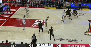 马里兰大学的教练还带奎因研究掘金队的录像,意图让他学习约基奇的打法,还模仿约老师的风格设计了一系列围绕奎因的战术。队友们甚至给他起了“黑宝约基奇(black baby Jokic)”的外号,奎因也确实有所收获,他偶尔能送出这种惊艳的传球,但综合来看,一个场均1.9助攻2.4失误的球员,还蹭不上约基奇的名号,也和他的偶像詹姆斯相去甚远。