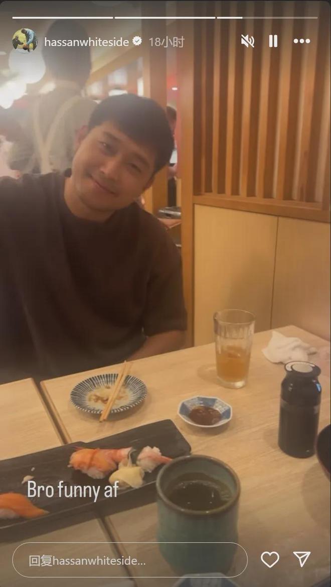 北京时间9月9日,据上海东方体育日报记者薛思佳报道,前NBA球员哈桑-怀特塞德已经抵达日本,跟上海男篮会合,他将代表上海男篮参加在日本的两场热身赛。怀特塞德本人在ins晒出视频,他和上海男篮翻译王彦青共进晚餐。