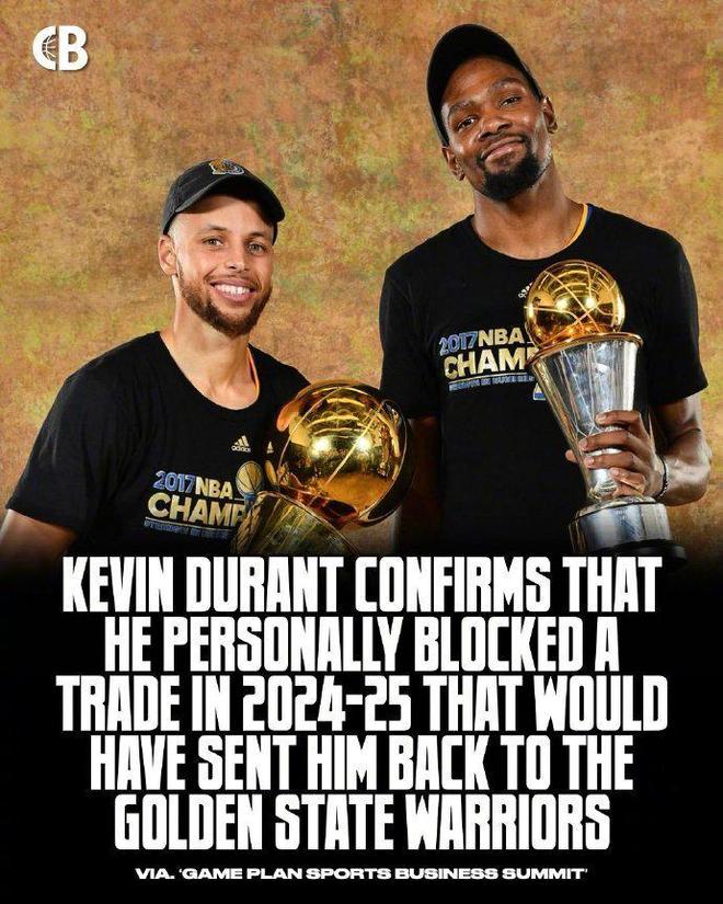 杜兰特近期参加一档节目中,谈到了在得知太阳在去年2月交易截止日前兜售自己时,心里受到了伤害,同时也承认拒绝了重返勇士的交易方案。在当时传出杜兰特的交易流言,勇士积极去推进,想要重新组成库里+杜兰特的组合,只可惜后者不愿再次回归,最终交易宣告破灭。