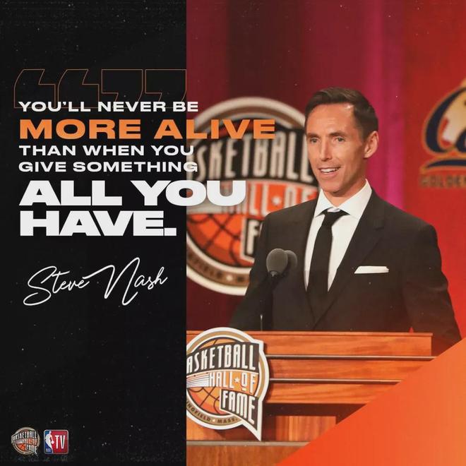 15年三月份纳什宣布退役,NBA生涯期间不仅获得如上所述的两个MVP,还7次入选最佳阵容,5次荣获助攻王,8次入选全明星,2次获得技巧大赛冠军,18年加入奈-史密斯篮球名人堂。