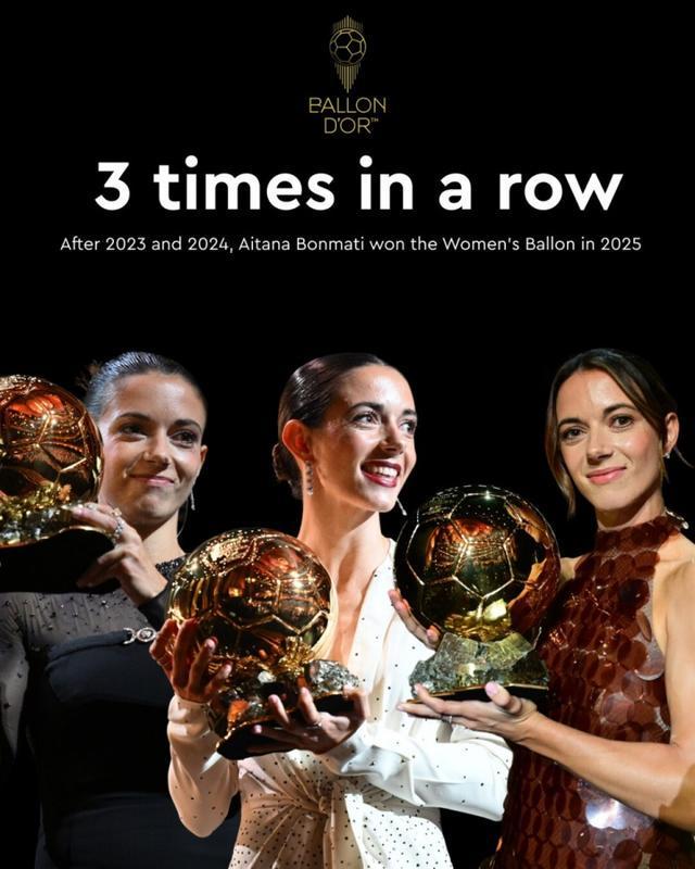 直播吧9月23日宣 巴萨女足球员邦马蒂获得2025年女子金球奖,这是她连续三年获奖。邦马蒂在采访时称自己没想到能够获奖。
