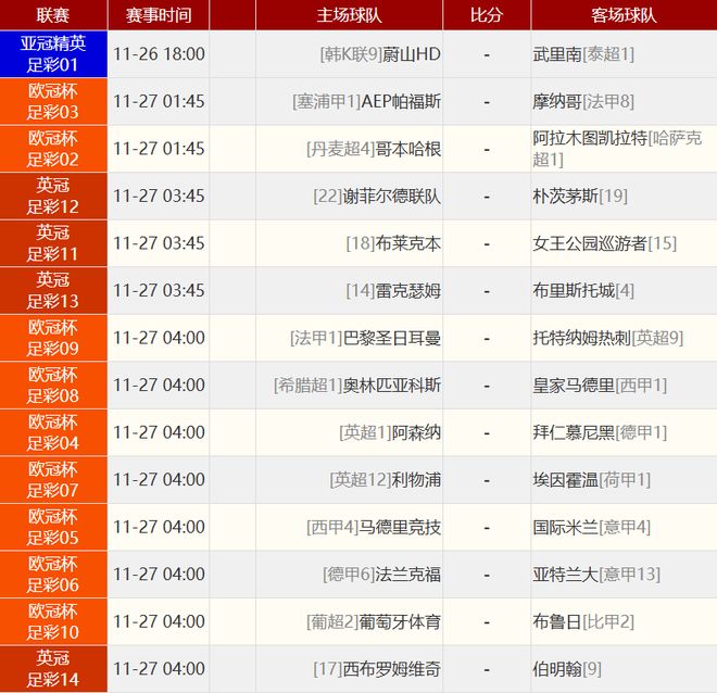 欧协联联赛阶段 11-28 04:00