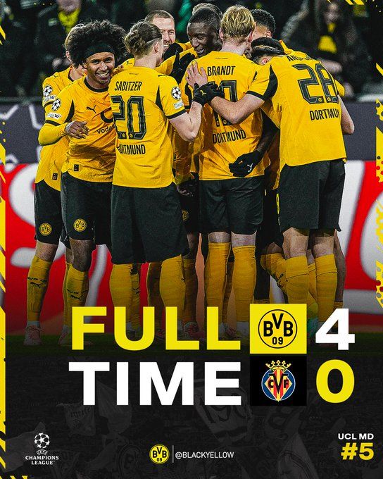 欧冠 多特蒙德 4-0 比利亚雷亚尔