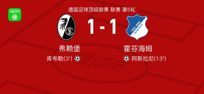 北京时间9月28日,2024-2025赛季德国足球甲级联赛第5轮,弗赖堡坐镇主场迎战霍芬海姆。比赛开始后,弗赖堡迅速占据主动,阿达穆送出精准助攻,库布勒接球后冷静施射得手,为主队先拔头筹。随后霍芬海姆展开反击,曹法尔边路突破后传中,阿斯拉尼抓住机会破门还以颜色,将比分扳平。此后双方互有攻守,但均未能再度改写比分。最终全场战罢,弗赖堡与霍芬海姆1比1握手言和。