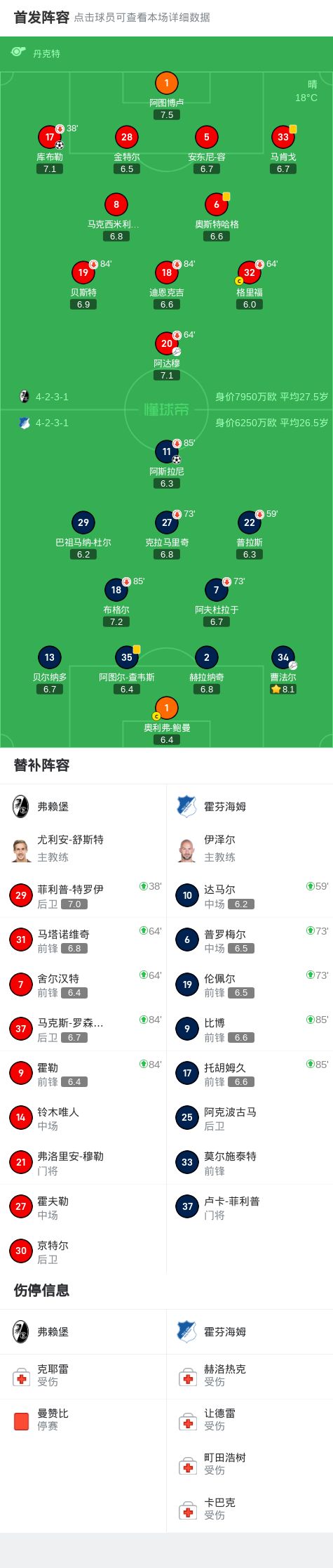 弗赖堡11霍芬海姆,库布勒首开记录,阿斯拉尼扳平比分