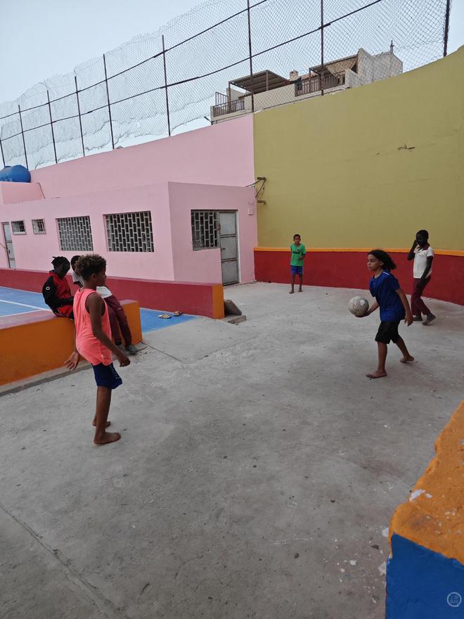阿罗介绍,佛得角淡水资源稀缺,种不出适合踢球的草,大部分人造草球场全是中国援助,包括社区健身器材也是中国援助建设,“在这里,每个村庄都会有一个足球场,人造草的、水泥地的、土沙的,没有足球场也能开块土地出来,拿木头做球门。”