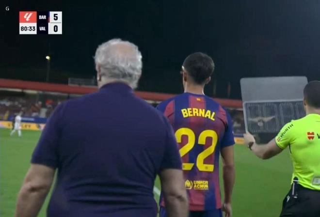 比赛第81分钟,贝尔纳尔替补登场换下佩德里,时隔383天再度代表巴萨出场。