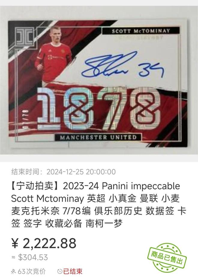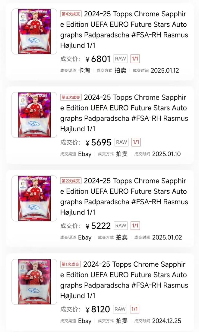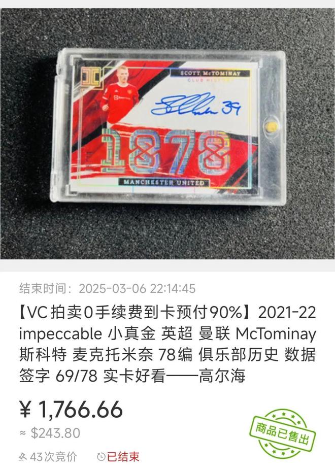国内二级交易市场中以这张PANINI小真金系列的数据签为例,24年底的成交价在2200元左右;而时间来到今年3月,价格便回落到了1700元。可见联赛曝光度对球员球星卡的价值评估以及市场反馈,小麦的出色发挥也许会引起其他豪门球队的关注,到时相信收藏者们会带来更多热情。