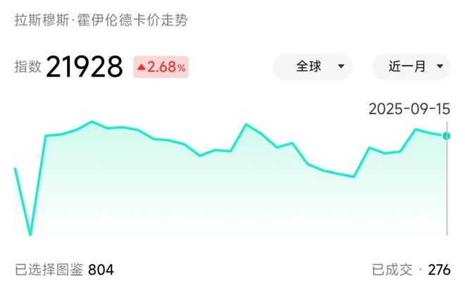 在经历了初到曼联时期的高期望后,数据惨淡的霍伊伦让曼联球迷逐渐失去了耐心,球队环境也并不利于对他的成长,又或许是收藏者们对于他“年轻”属性的看好,霍伊伦相关球星卡在度过一小段时间的“大跳水”后又重新回到了正常的区间范围,甚至目前仍有小幅度的上涨。