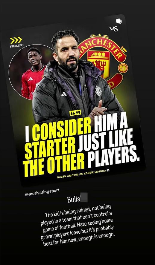 本赛季,梅努在各项赛事仅代表曼联首发出战一次,在对阵西汉姆联的比赛中,梅努再次替补待命,比赛期间,斯科尔斯在社交媒体上发表动态,谈到了自己的看法。在赛前新闻发布会上,阿莫林在