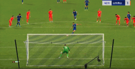 第40分钟,王大雷禁区内出击撞倒了刘诚宇,主裁判判罚点球,随后吴曦主罚命中,帮助上海申花2-1再度领先。