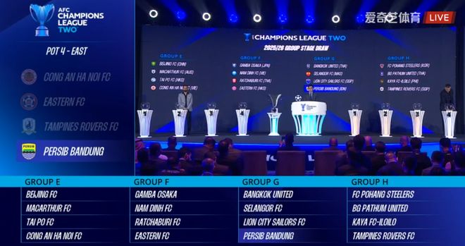 H组:浦项铁人(韩国)、巴吞联(泰国)、卡雅(菲律宾)、淡滨尼流浪(新加坡)